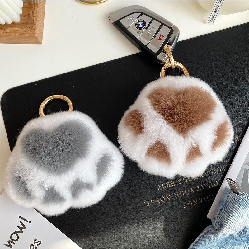 Leopard Claw Rex Rabbit Fur Ornament Plush Bag Pendant Car Keychain Cute Accessories