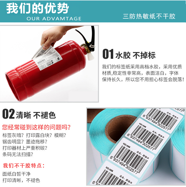 Square three anti-heat sensitive label paper photocopy paper 10 15 20 20 30 30 40 50 50 rows of milk tea waterproof blank stickers Adhesive Barcode Square two-dimensional code stickers Customized