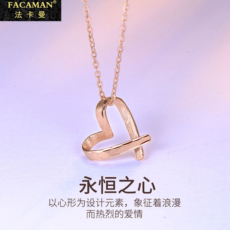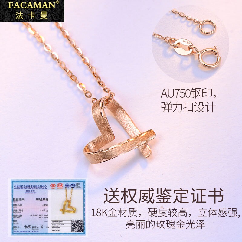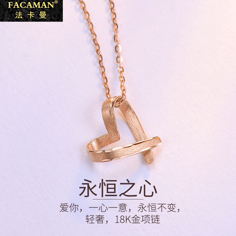 Fakaman Color Gold Necklace Women's Rose Gold Gold au750 Loving Pendant 18K Gold Chain Lock Bone Trekking Tide
