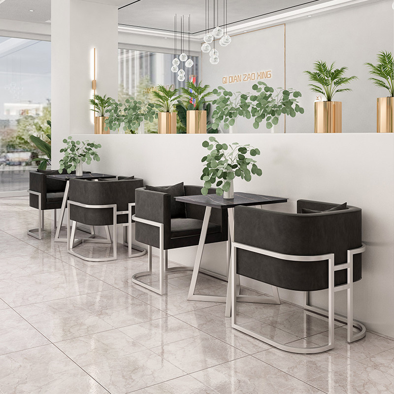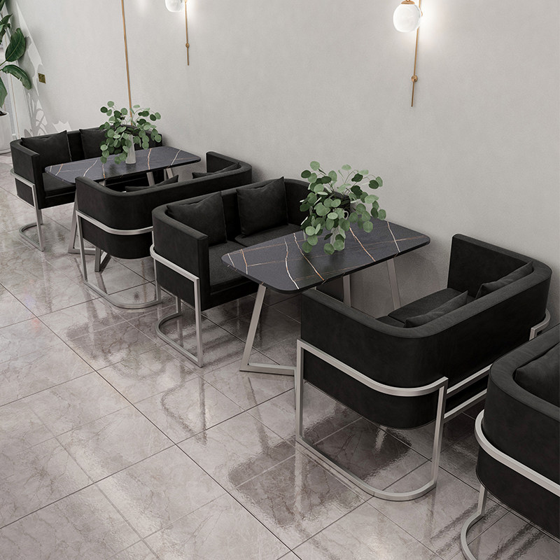 Modern Wind Cafe Tea Restaurant Milk Tea Iron Sofa Music Dining Bar Bar Clear Bar Card Seat Dining Table and Chair Combination