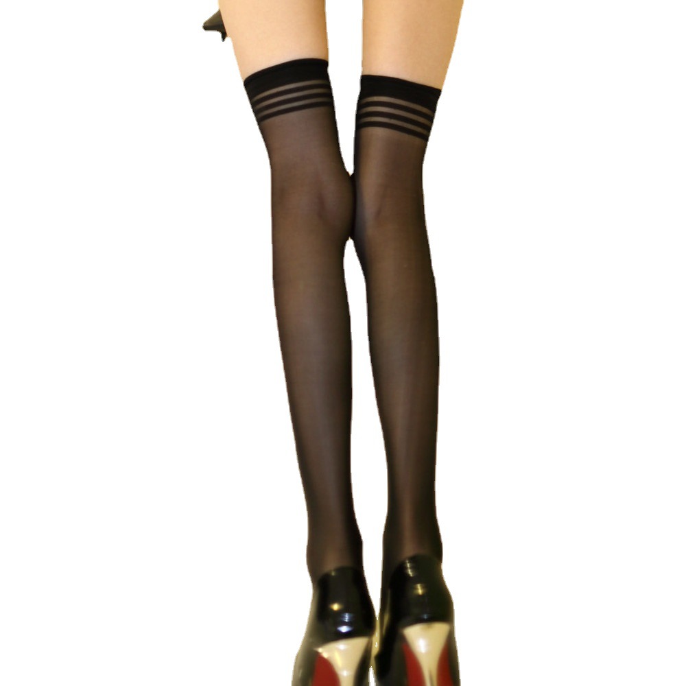 Stockings, boots, sexy stripes on the bed, over the knee, long core, sexy transparent thighs with garter belt girdle