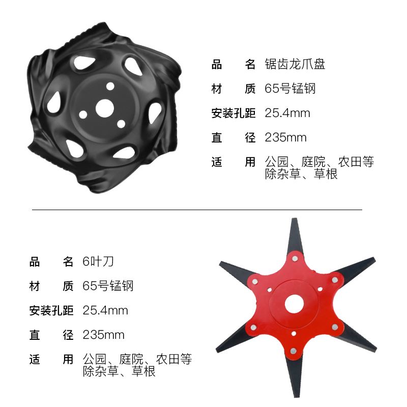 Ordinary dragon claw plate with high hardness and thickened dragon claw plate with high hardness alloy six-leaf knife new 6-inch thick-strand wear-resistant steel wire weeding wheel new new 8-inch thick-strand wear-resistant steel wire weeding wheel] new amphibious weeding