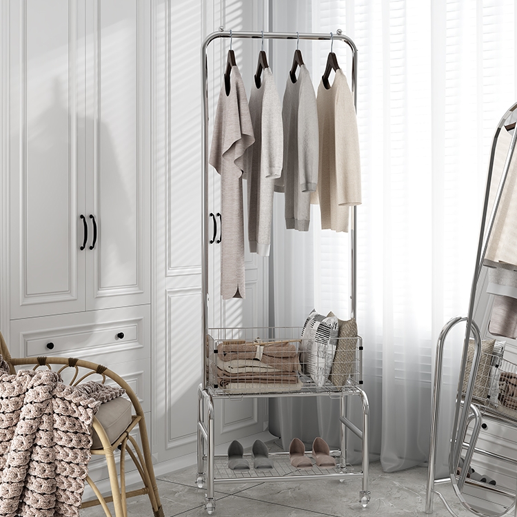 Shopping basket hangers floor bedroom simple sub-clean coat rack multifunctional household mobile hangers ins storage