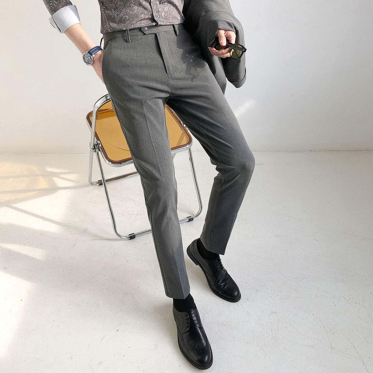 Rich Guido 2021 new casual Western pants men's body small feet pure color 100 lap spring summer business positive dress pants