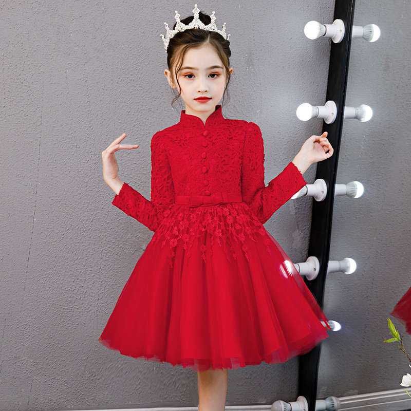Girl's dress 2022 new spring and autumn Korean version of children CUHK child red little girl gown princess dress