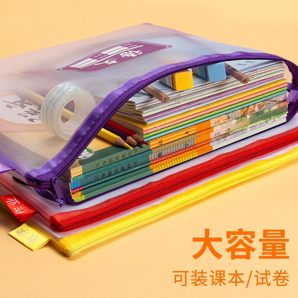 Subject classification file bag zipper double-layer large-capacity primary school students use homework bag transparent mesh A4 information bag language sub-subject book bag test paper storage bag student paper bag