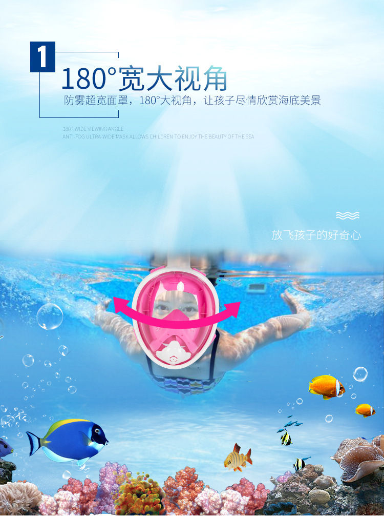 Children's snorkeling diving full-face mask full dry silicone diving mask swimming anti-fog diving goggles respirator equipment