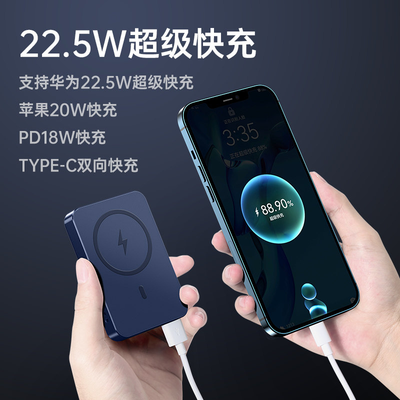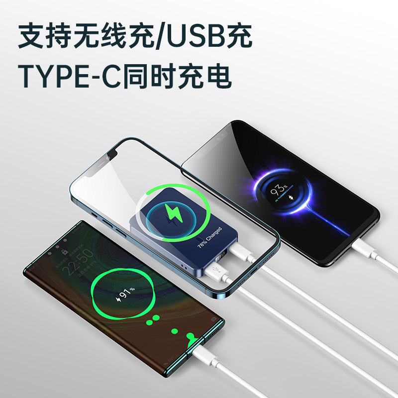 Magsafe magnetic attraction wireless mobile charging ultra-thin small portable 20000 milliamian applicable apple 12 13pro max mobile phone mobile charging external style oversize customisation