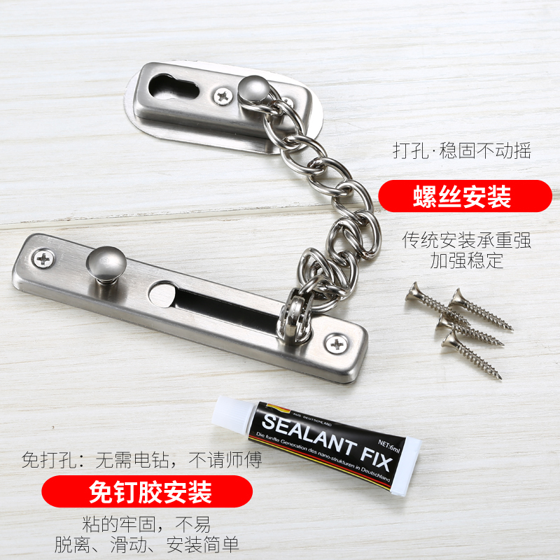 Door chain door chain safety chain punch-free hotel hotel household stainless steel door chain door inner buckle door lock door lock