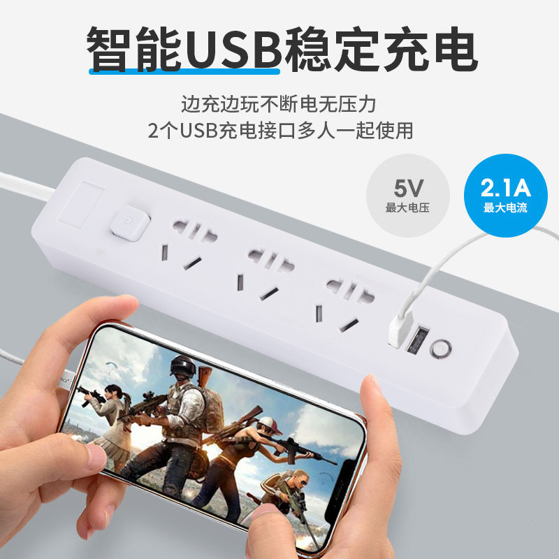 Multi-function USB socket with line Smart household plug-in multi-hole drag line wiring board power switch mobile phone charging