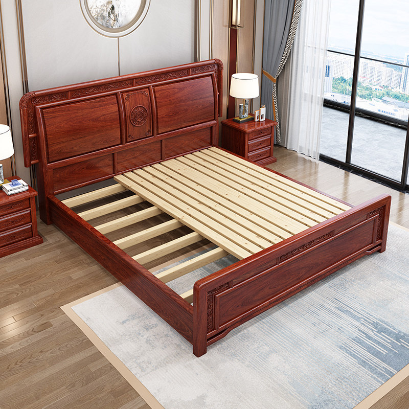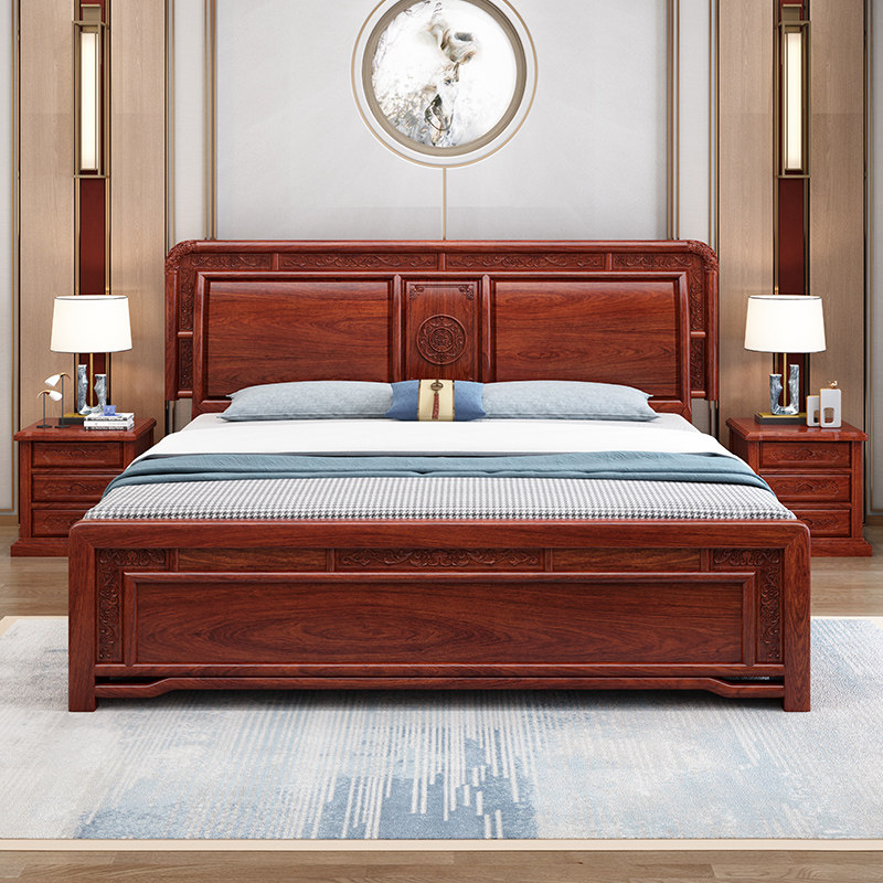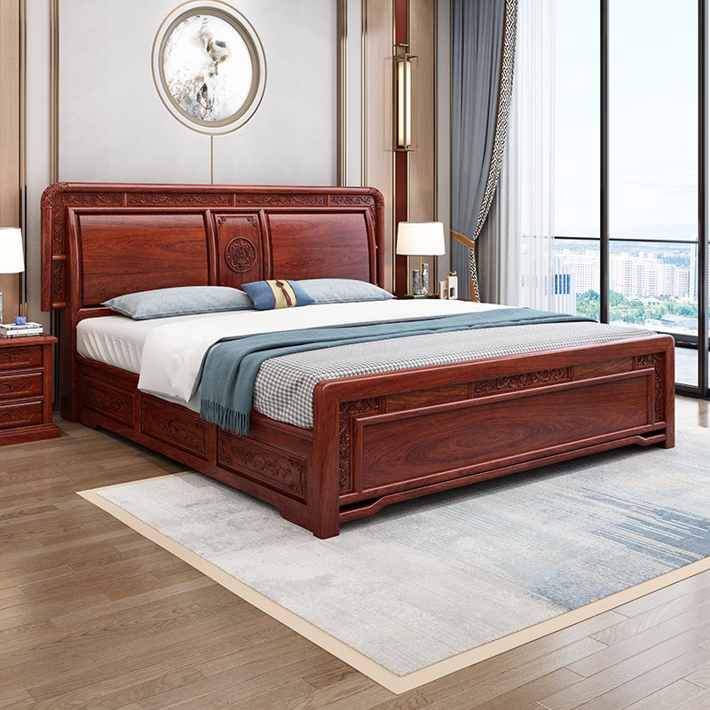 Factory direct sale rosewood solid wood double bed 1 8 meters storage new Chinese style classical master bedroom mahogany furniture