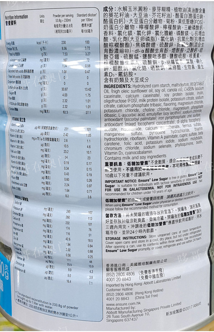 Macau Abbott Low Sugar Garment Port Edition Full and balanced Nutritional Products Vanilla Taste Adults of Aged Milk Powder