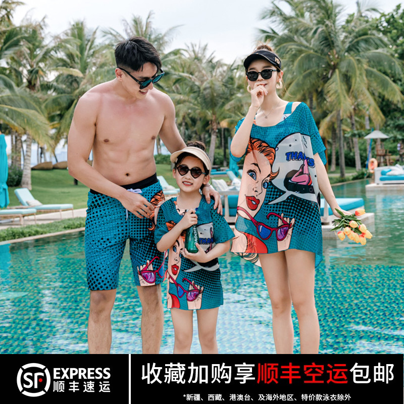 Mother-child swimsuit and daughter summer new couple sports wind three-piece sunscreen children family three-family clothes