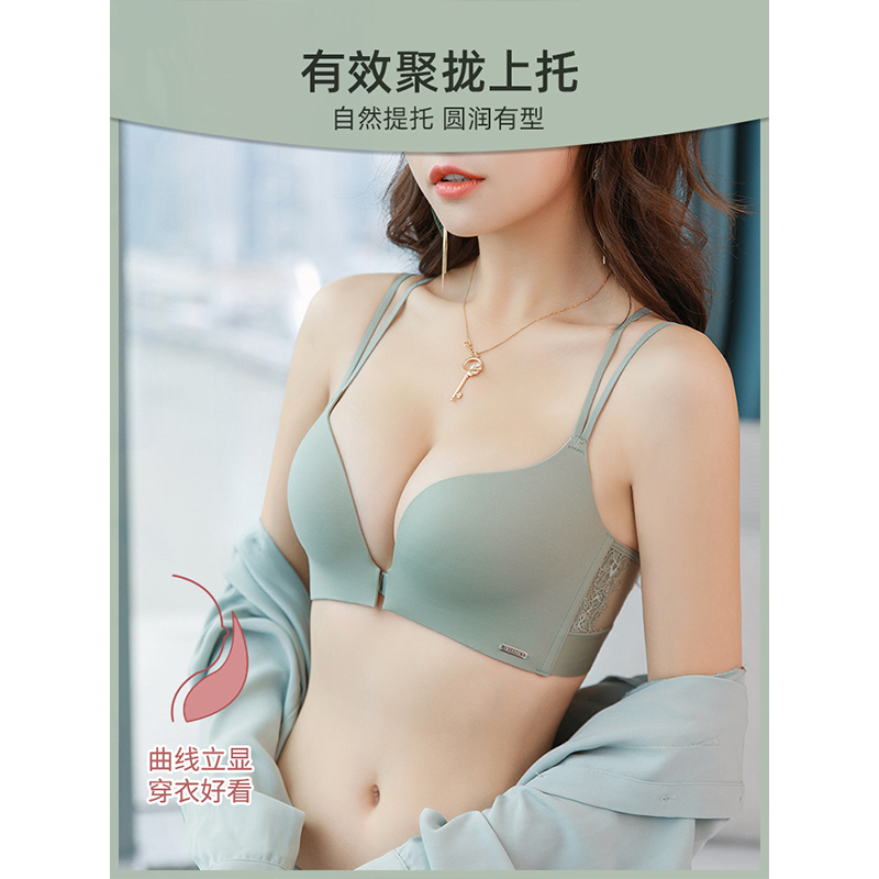 Front button underwear female summer small chest gathered 2021 new sexy thin shoulder straps cross beautiful back no steel ring bra bra