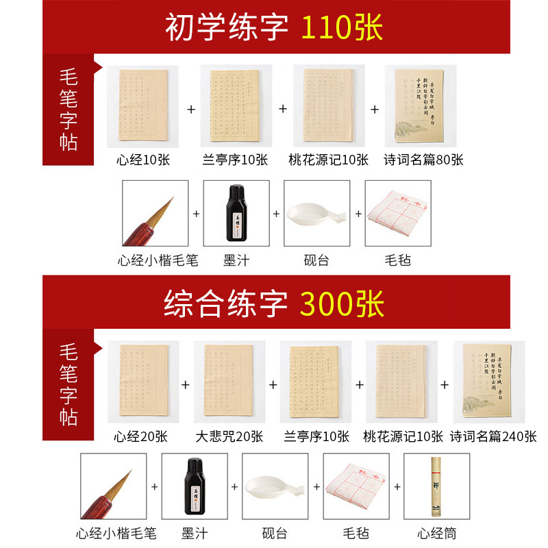 Mao Pen Copybook Introductory small block in italicized book Costume Beginners Sketch Red Paper Soft pen Heart through hand Transcript of Buddhist scriptbook Principal Just Jing Tragically Mantra Moral Scriptbook Calligraphy calligraphy Calligraphy Practicing special paper