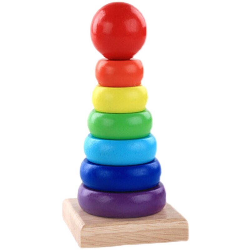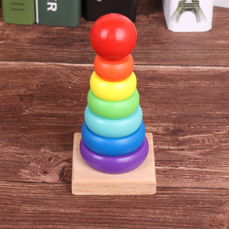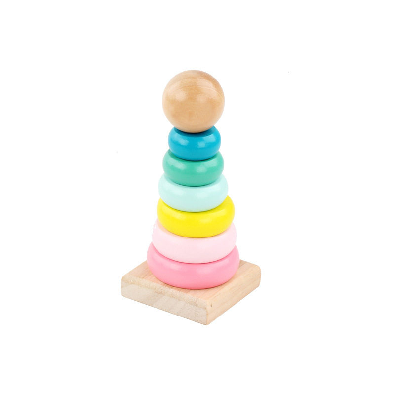Wooden colorful stacks of children's early education educational toys for infants and young children fall sets of layers of rainbow sets of tower sets of rings