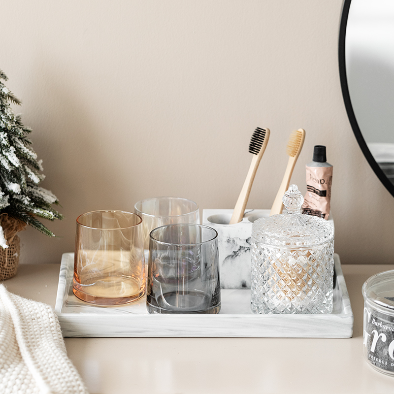 Marble Electric Toothbrush Frame Glass Cotton Ball Box Marble Ceramic Large Tray 6 pieces of soot ash amber color
