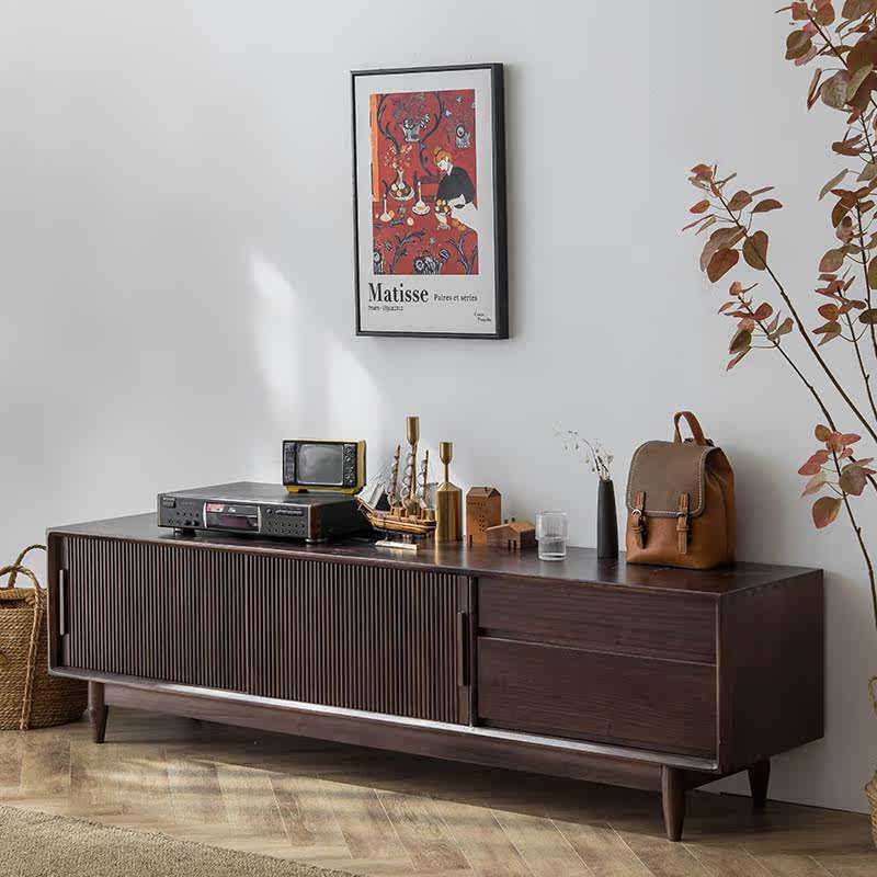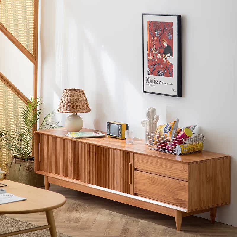 Modern minimalist TV cabinet coffee table combination solid wood light luxury living room integrated wall cabinet Nordic small apartment simple floor cabinet