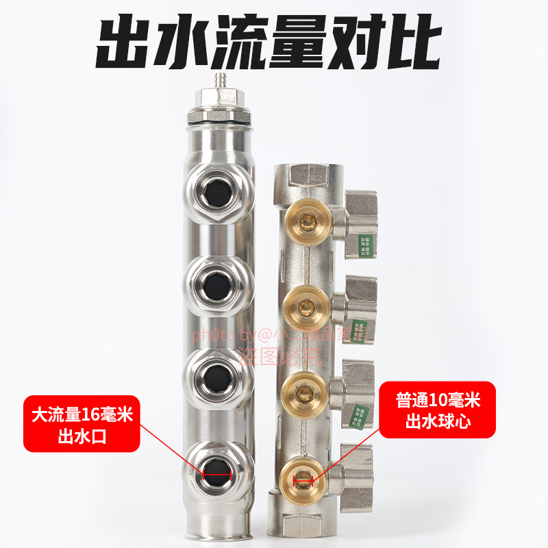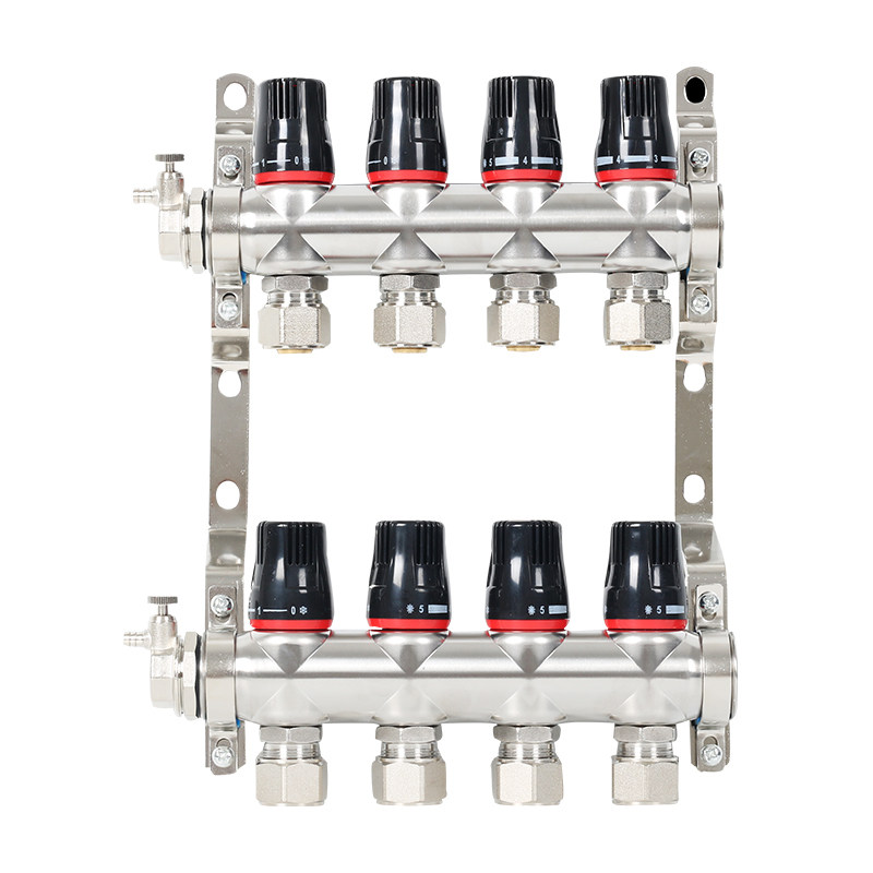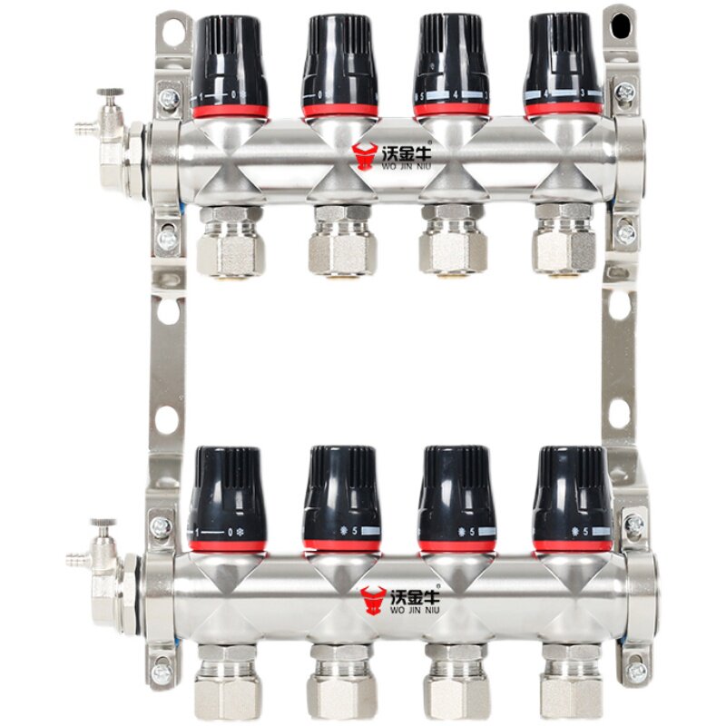 Wojinniu high-flow stainless steel water divider floor heating household geothermal inlet and outlet water sleeve valve 4-way 1-inch temperature control valve