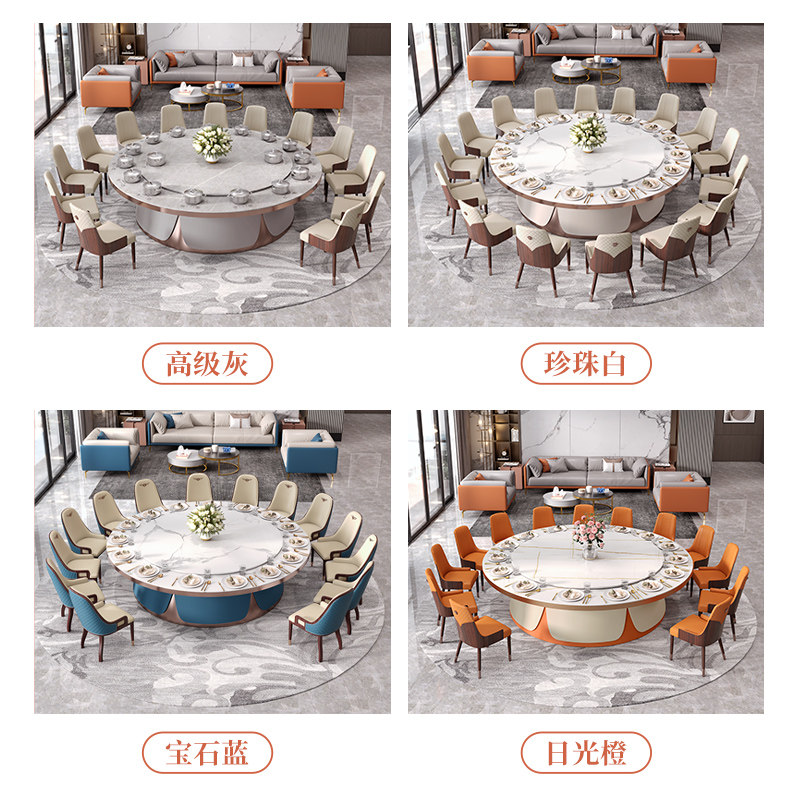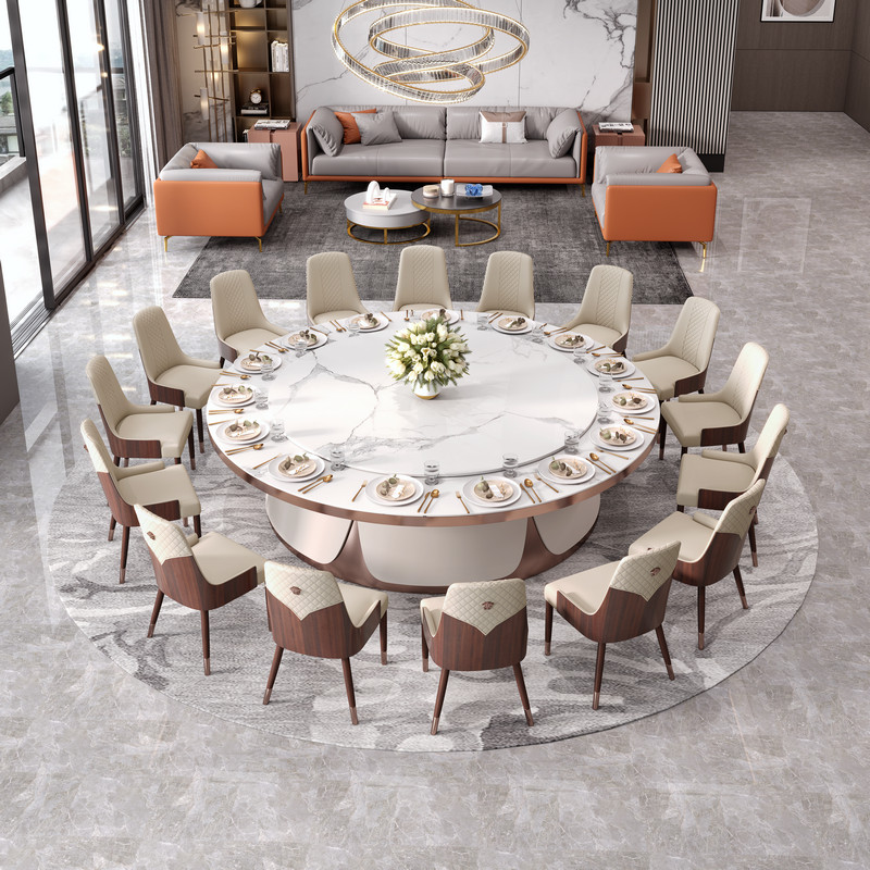 Funker Hotel Big Round Table Electric Dining Table Hotel Table And Chairs Club Table 12 People 16 People 20 People Light Lavish Rockboard Table