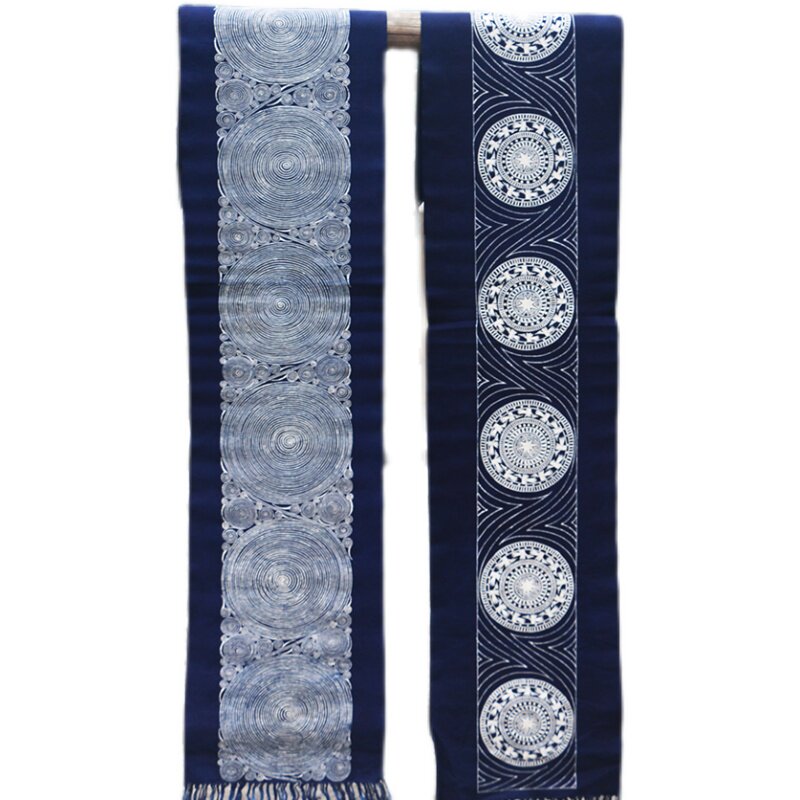 Leaning mountain people Qiandongnan ethnic wind cloth art tea cloth Miao ethnic specialties Handmade batik with long table cloth length 200cm