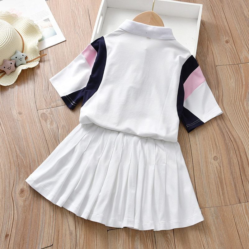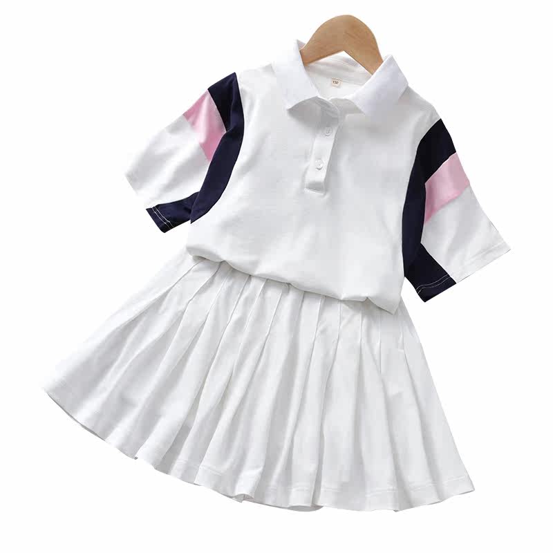 Girls Academy Wind Sports Suit Summer Net Red Ocean Pie Summer Summer Thin Children Short Sleeve Large Child Casual White