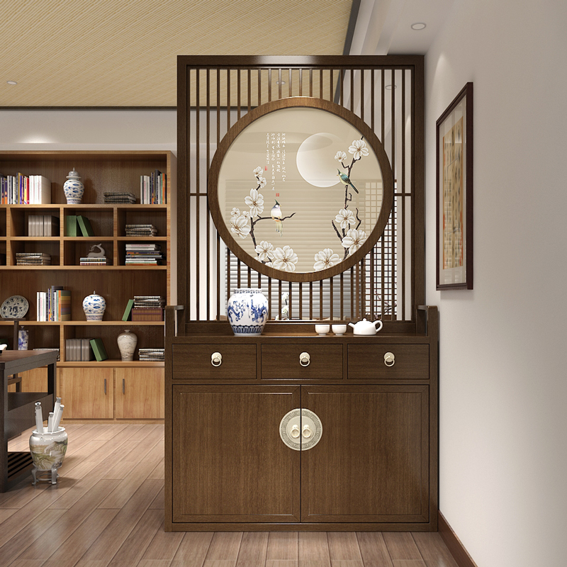 New Chinese solid wood screen swinging piece partition living room modern minimalist sheltering decorative door hall Xuanguan cabinet for household entry