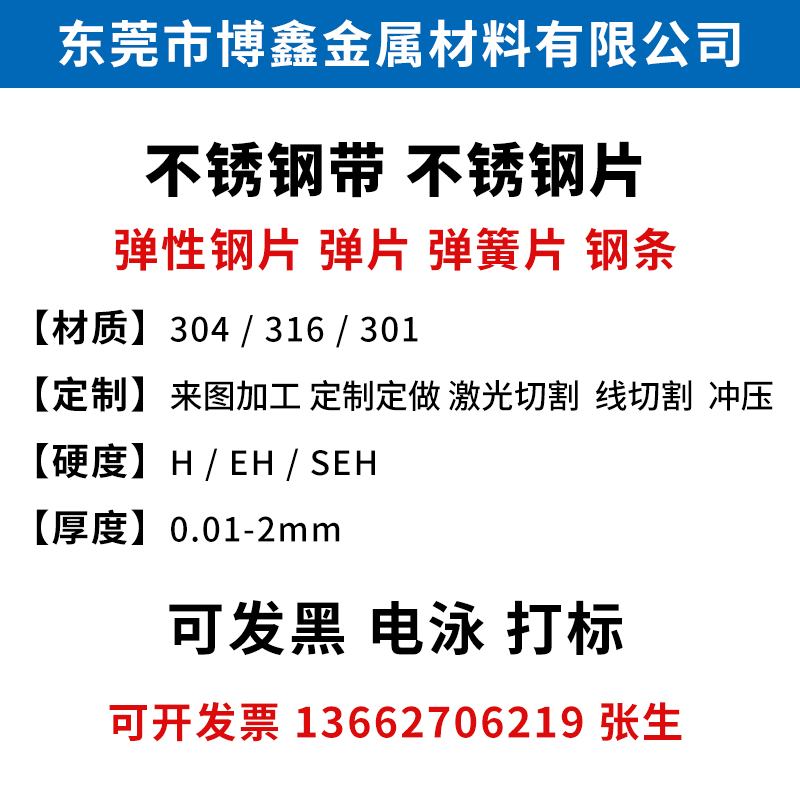 301304 stainless steel strip sheet spring sheet elastic spring steel sheet laser cut machining customization