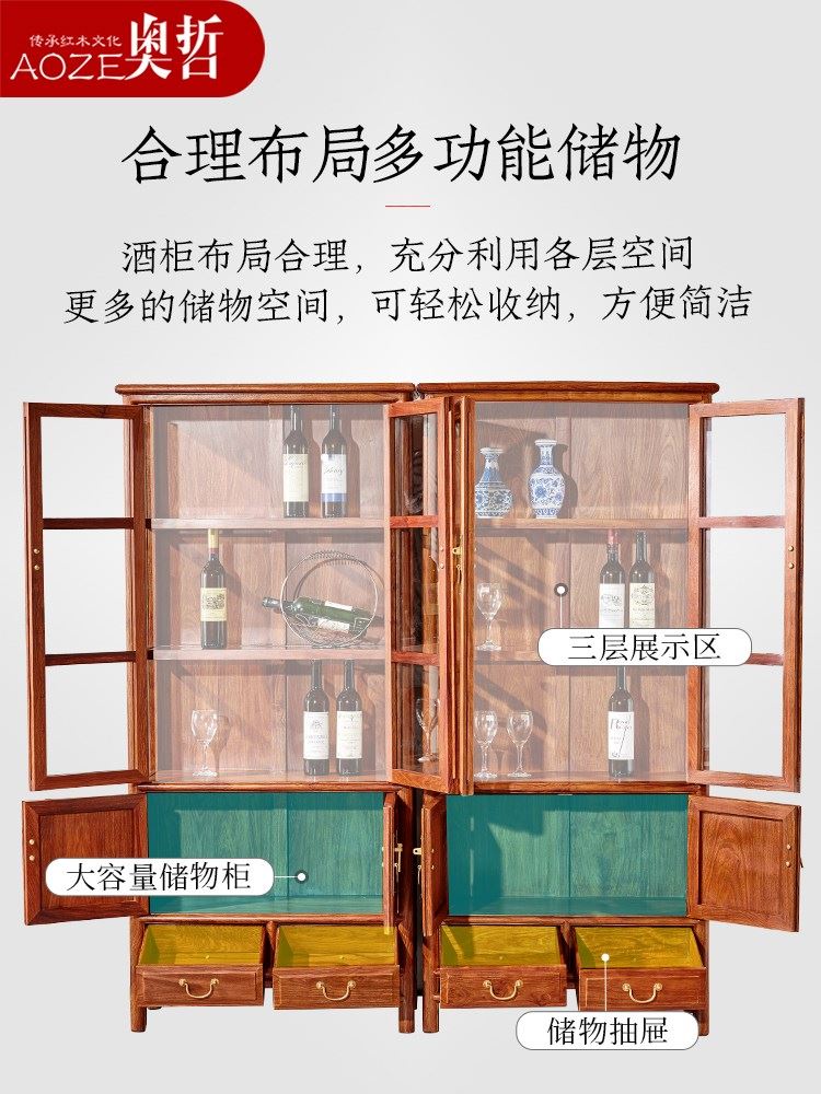 Red Wood New Chinese Home Innate Hedgehog Purple Sandalwood Glass Wine Cabinet Flowers Pear Solid Wood Display Cabinet Bookcase Minima Whole Cupboard