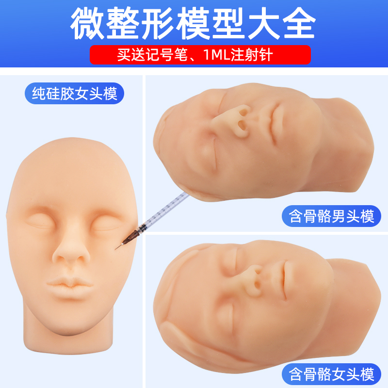 Vein Puncture Module Neutral Silicone Head Model Double Eyeball Leather Practice Silicone Gel Human Head Model Skin Stitching Module Male Silicone Head Model (Intron Bone) Female Silicone Head Model (Containing Bone) One