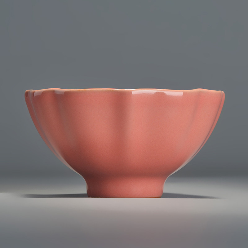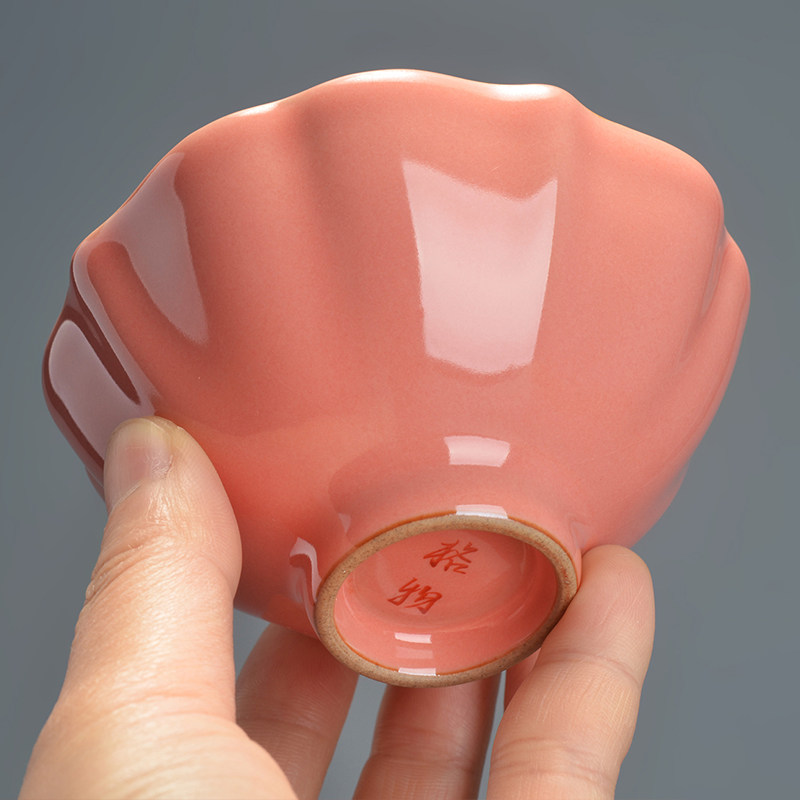 Grem Ru Kiln Peach Red Glaze Rhombus Pint Cup Tea Cup Master's Cup Jingdezhen Porcelain Kung Fu Tea Set Open Sheet Raising Cup