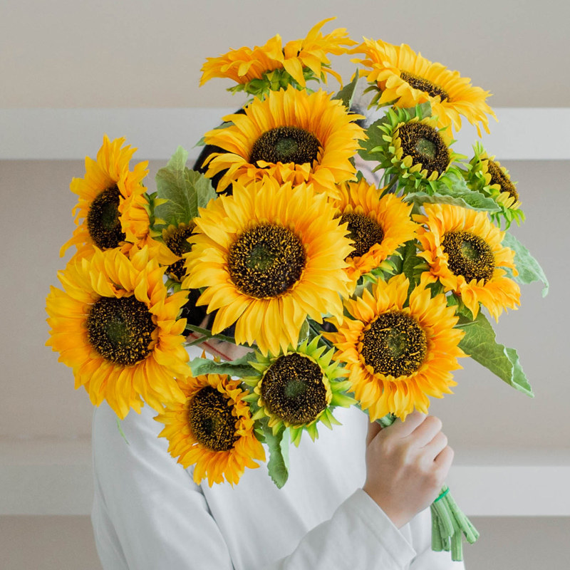 Single-head sunflower 3 head sunflower yellow A 3 head sunflower orange teddy sunflower yellow short branches Sunflower Beam Lavender Single Branch Coconut Leaf 2 Branches Single Sunflower 3 Branches Single