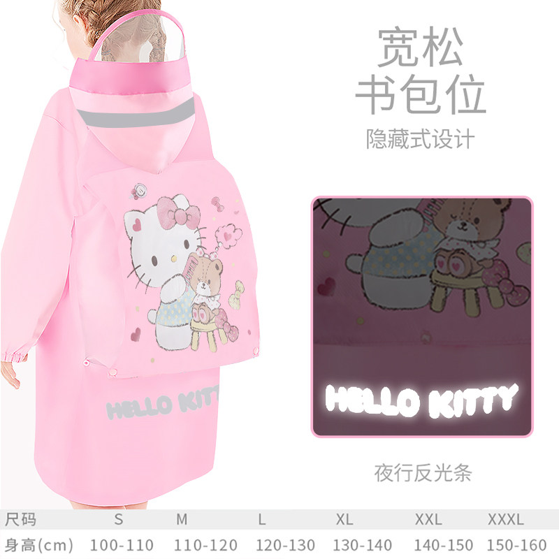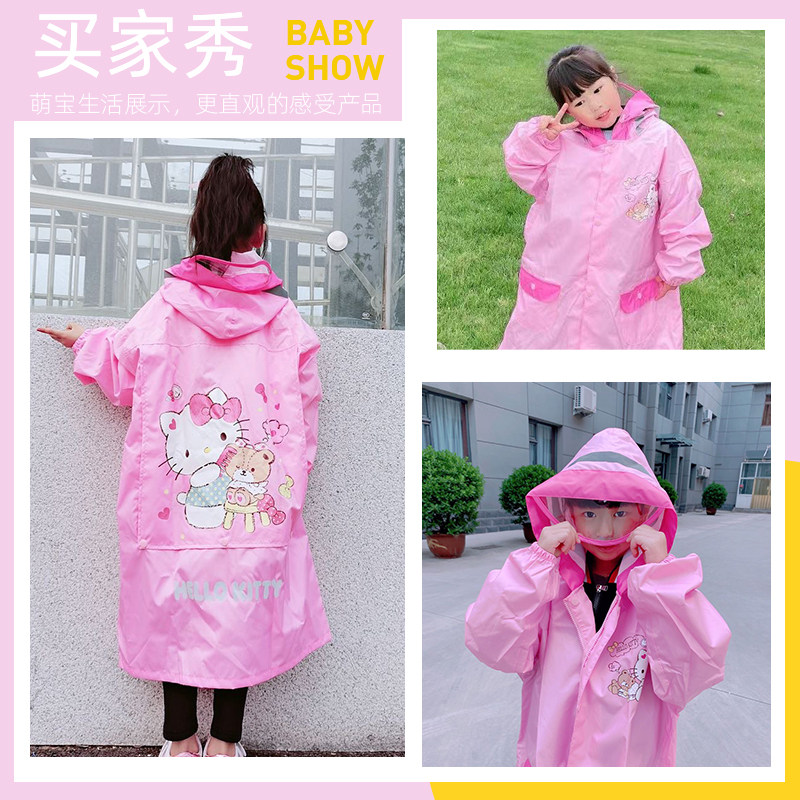 Katy cat child raincoat girl 2022 primary school student with school bag Thickened Little Girl Baby Rain Cape-Taobao