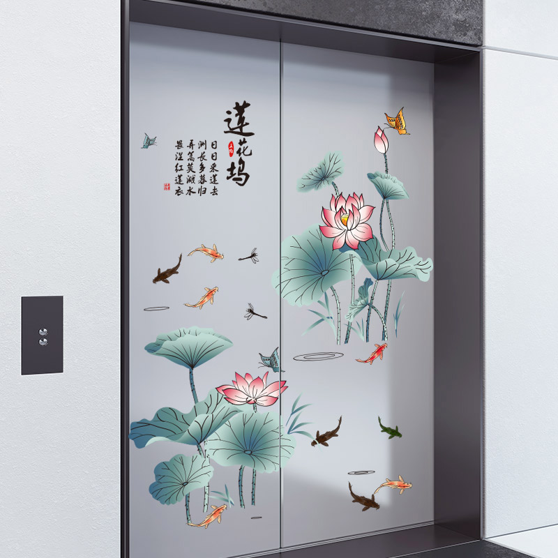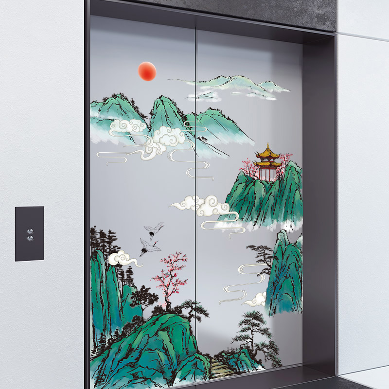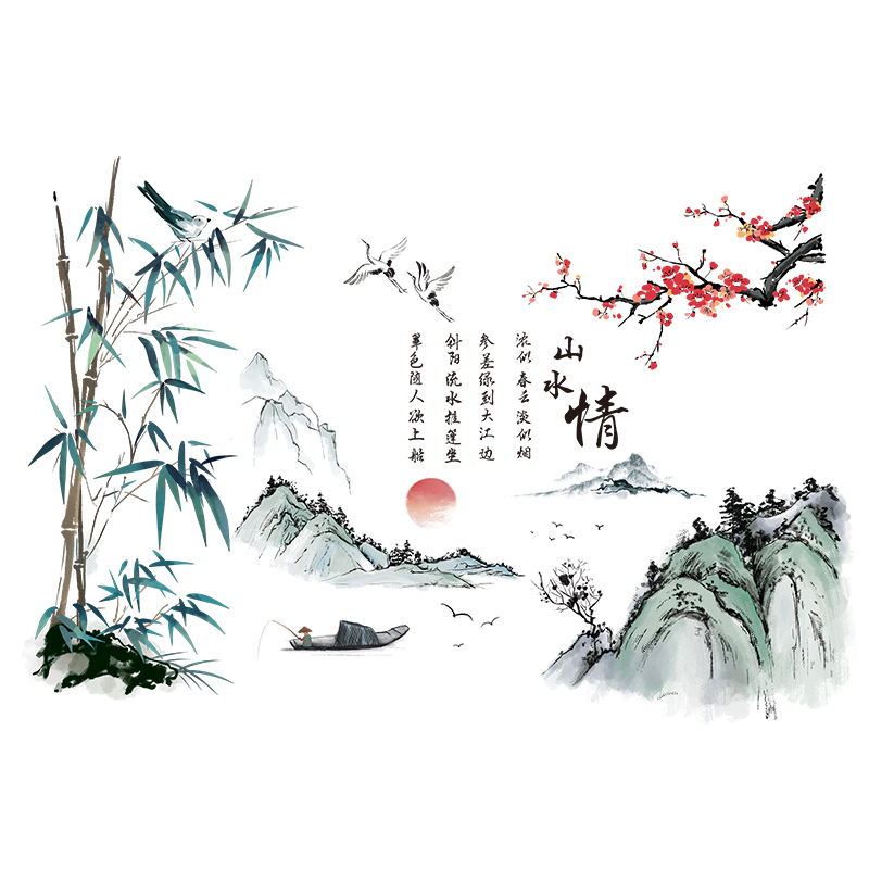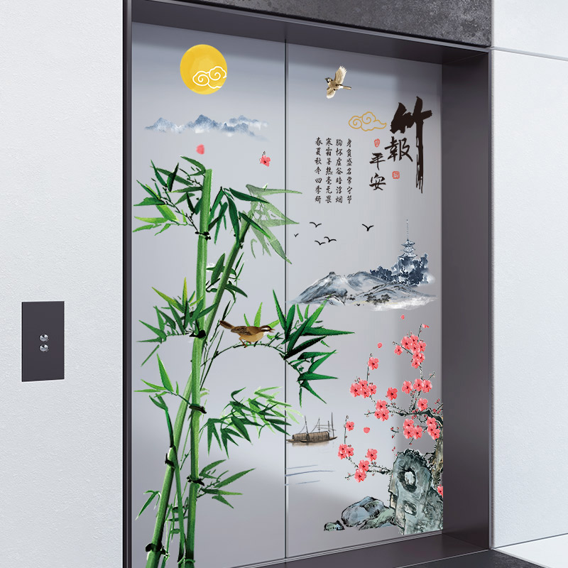 Back view of an ancient woman Chinese style landscape bamboo Green bamboo chandelier Green mountain black bamboo Deep in bamboo forest Chinese style lotus Green mountain cloud smoke Meditation inspirational sticker Green bamboo gourd send blessing
