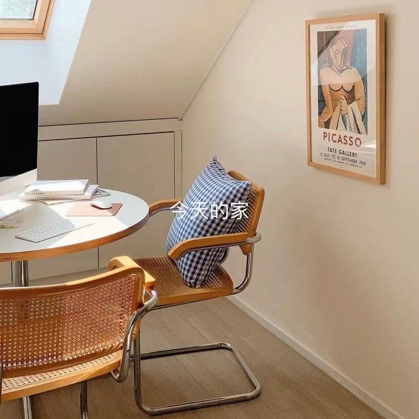 today home antique style solid wood rattan chair backrest arm dining chair Korean ins blogger leisure homestay chair
