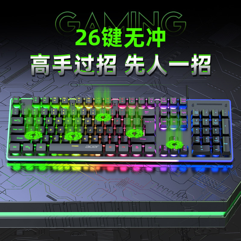 Acer Game Keyboard Wired desktop laptop USB external film Commercial office typewriter mechanical green tea red and black axis handheld keyboard mouse group