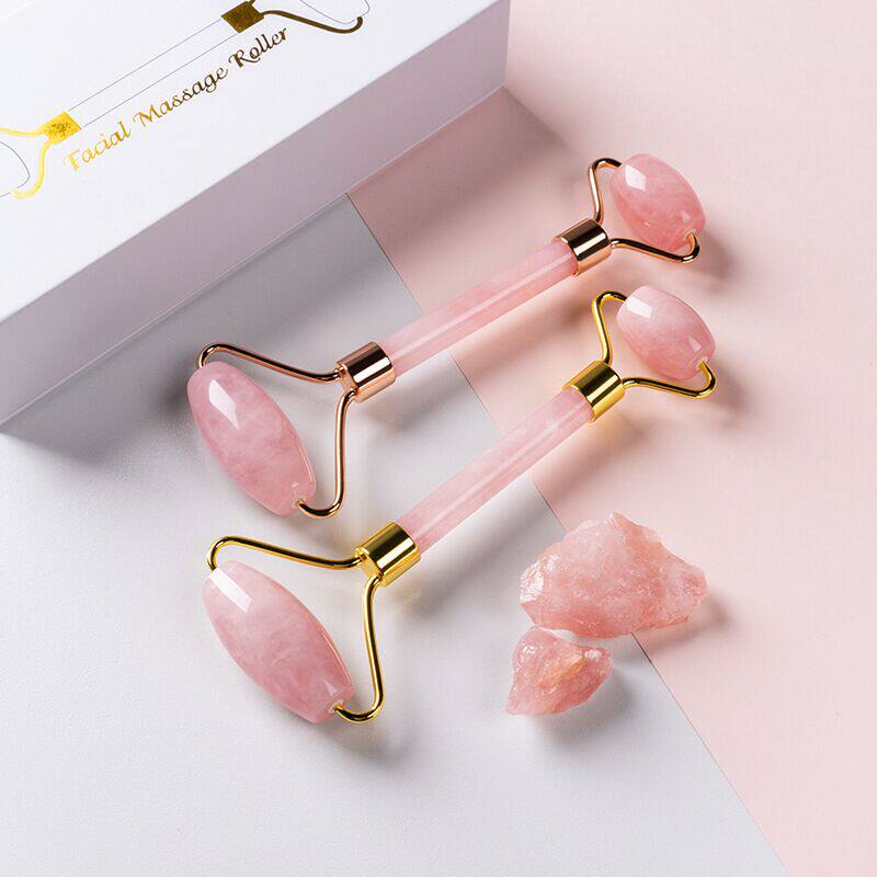 Single pink crystal roller (boxed) heart-shaped scraping plate three-head massager rose gold (boxed) pink crystal shofar-shaped green phoenix jade roller (boxed)