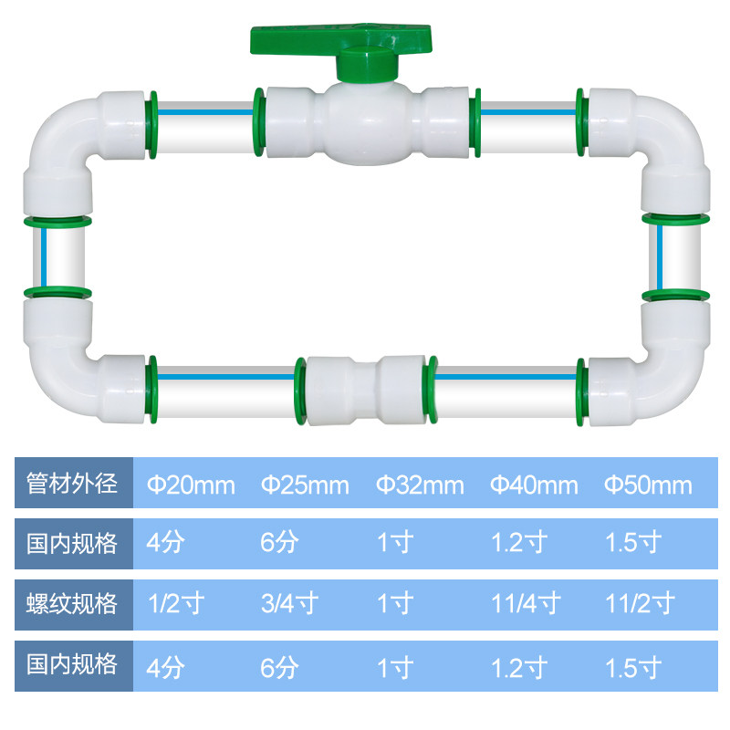 4 minutes 20PPR heat-free melting water pipe quick connector 1 inch 6 minutes 25 iron-free quick-connect valve accessories cold and hot water pipe fittings