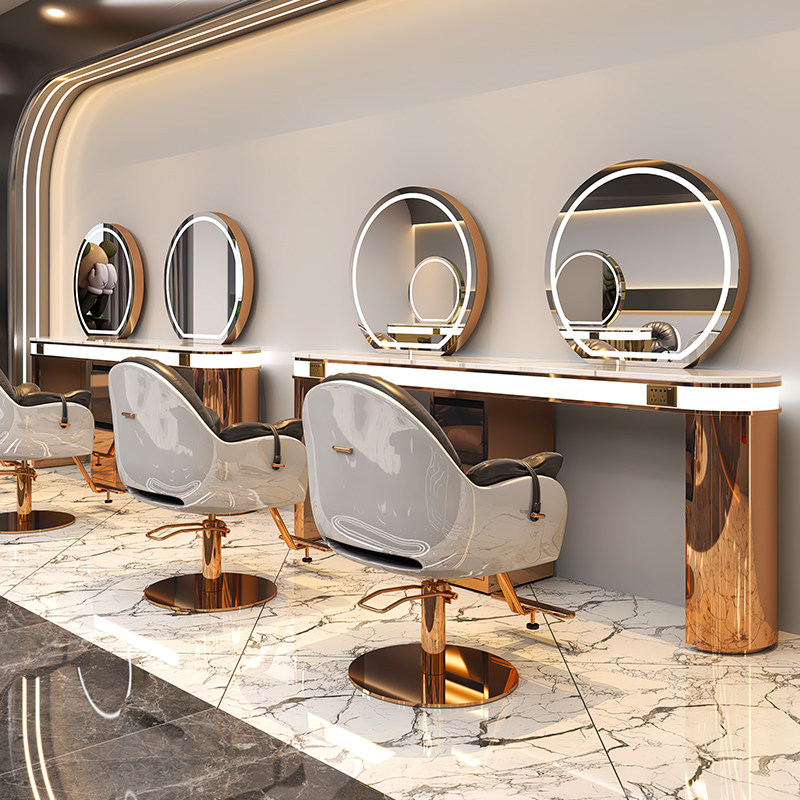 Net redness dressing-shop mirror desk with lamp close to wall single-sided haircut mirror bronzing mirror beauty hair shop Mirror Hair Salon Special Tide