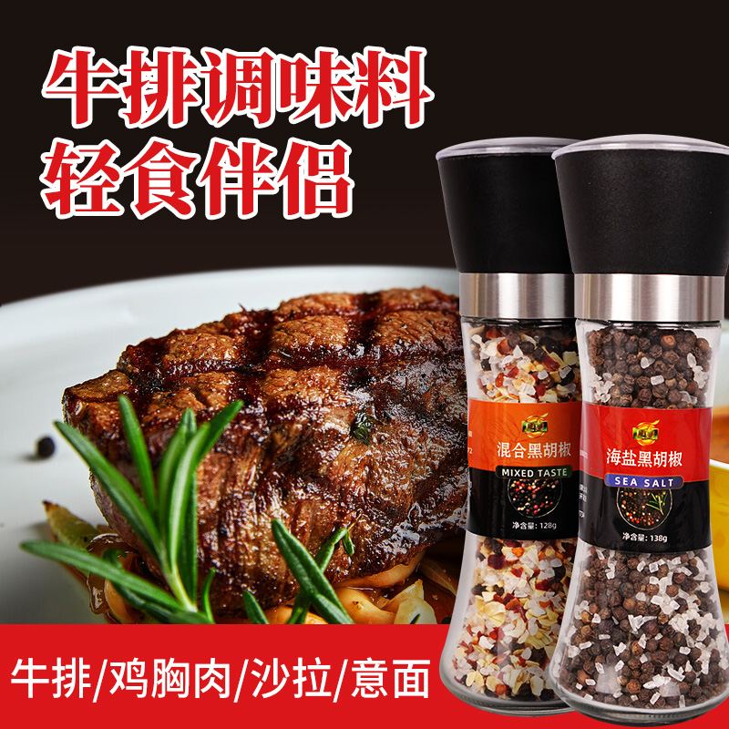 Food Banquet Sea Salt Black Pepper Grain Grinding Bottle Mixed Seasonings Grinding Machine Low Fat Light Food Salad Steak Seasonings