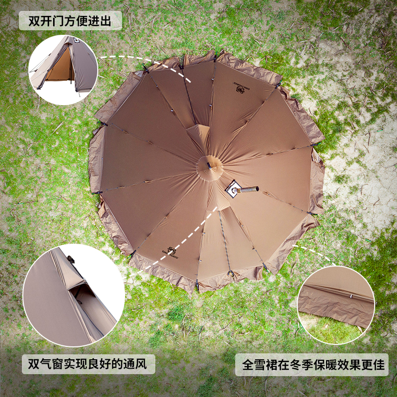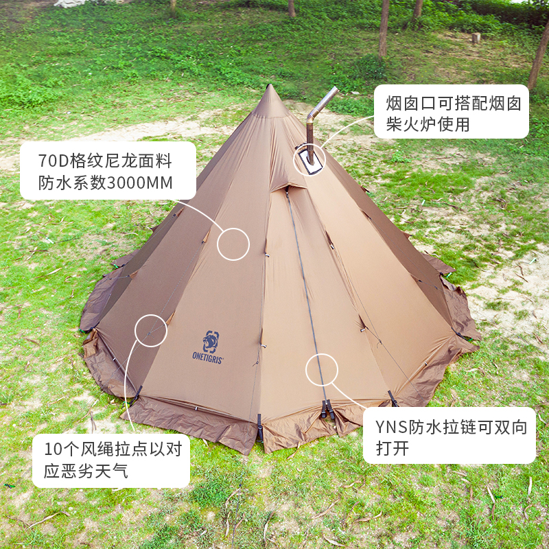 One Tiger Large Pyramid Tent Multiman Outdoor Campsite Delicate Camping Rain Protection 3-6 People Camping Chimney Tent