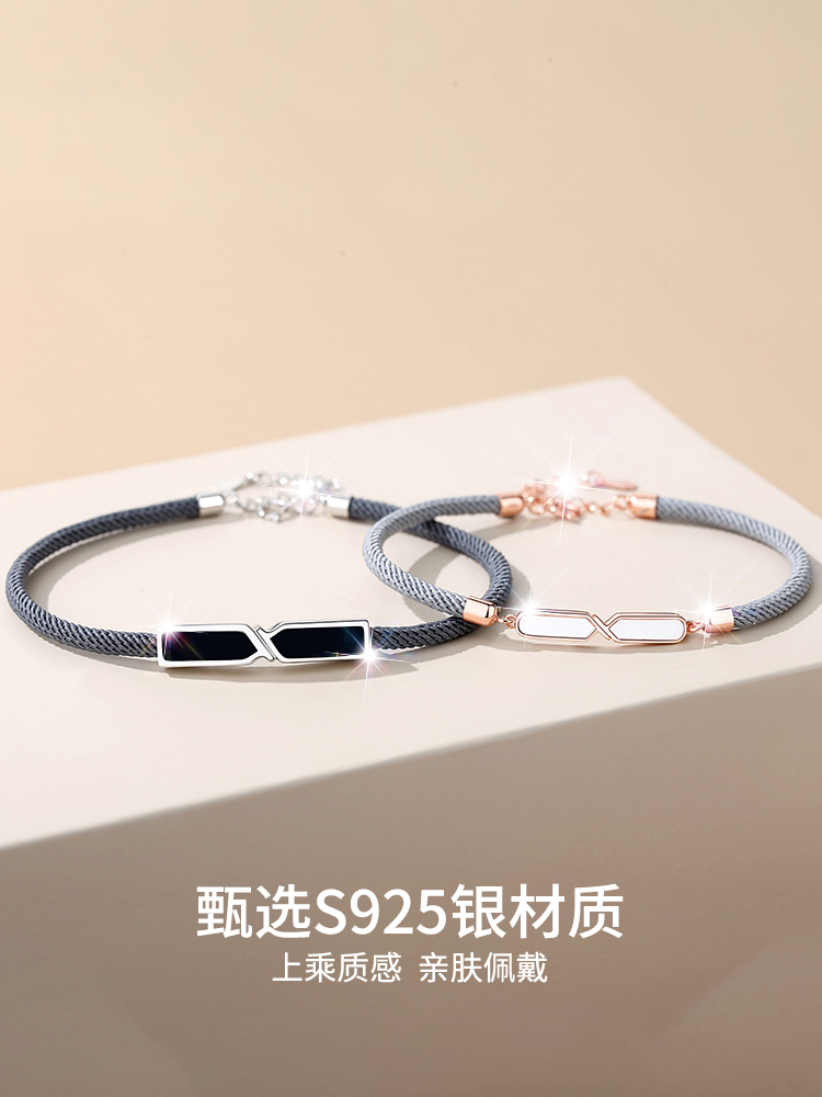 Couple's Hand Sterling Silver Men's and Women's Braided Bracelet Small Original Design Simple Hand Jewelry Birthday Gift for Girlfriend