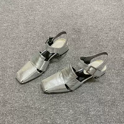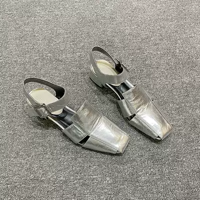 Overseas 2021 summer new Baotou word buckle sandals female ins tide square head root in thick with European women