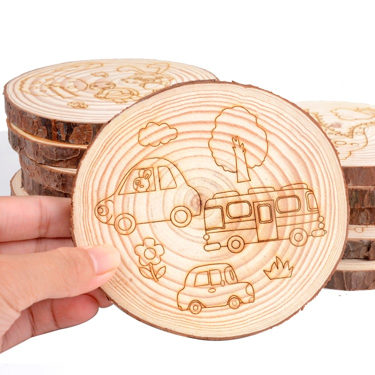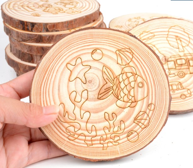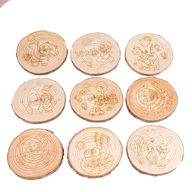 Round wood chip diy hand-painted materials handmade wood chip kindergarten decoration small wooden pile annual ring wood block wood chip