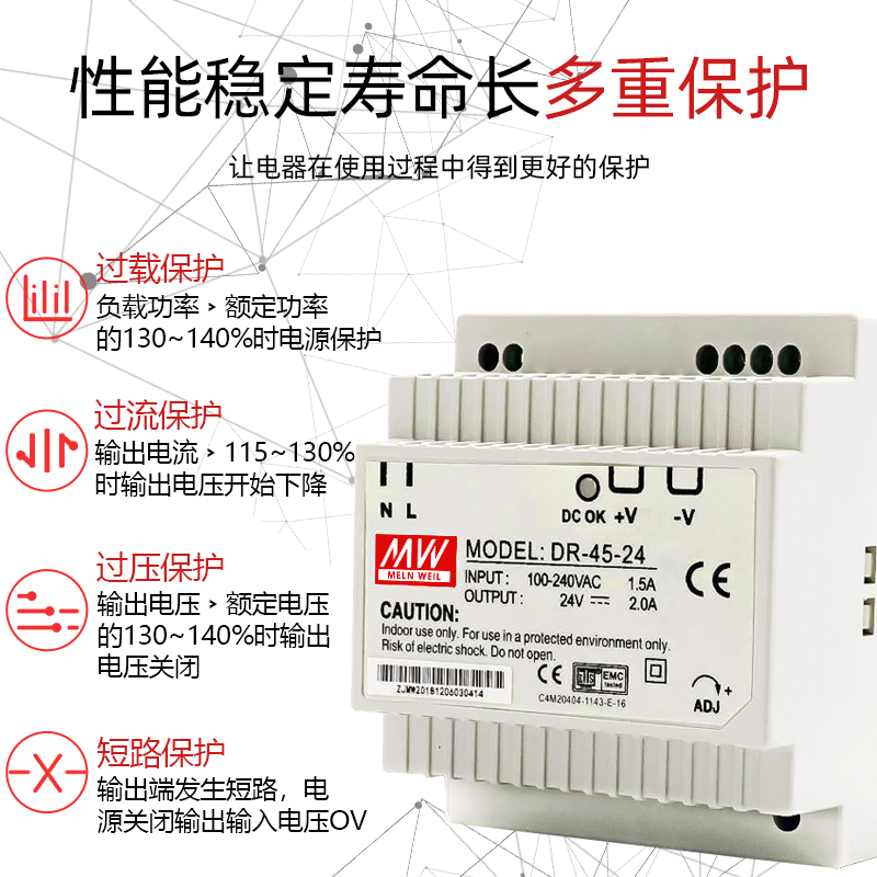 Ming Wei 45W rail switch power supply DR-45-24V2A 12V3 5A15V 5V industrial DC output