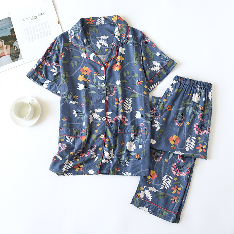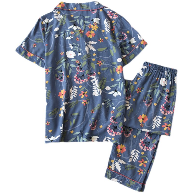 Spring Summer Sleeping Girl 2022 New thin models Short sleeves Long pants Home Loose Cotton Silk Home Clothing Two Sets