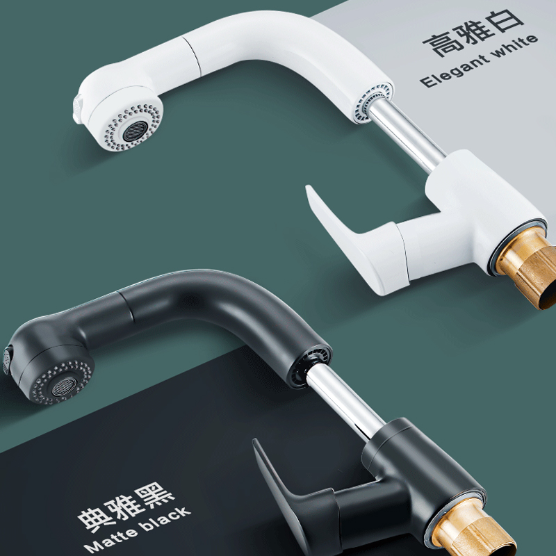100 Han white pull-out face basin tap lift rotatable extension wash-head washbasin hot and cold tap black