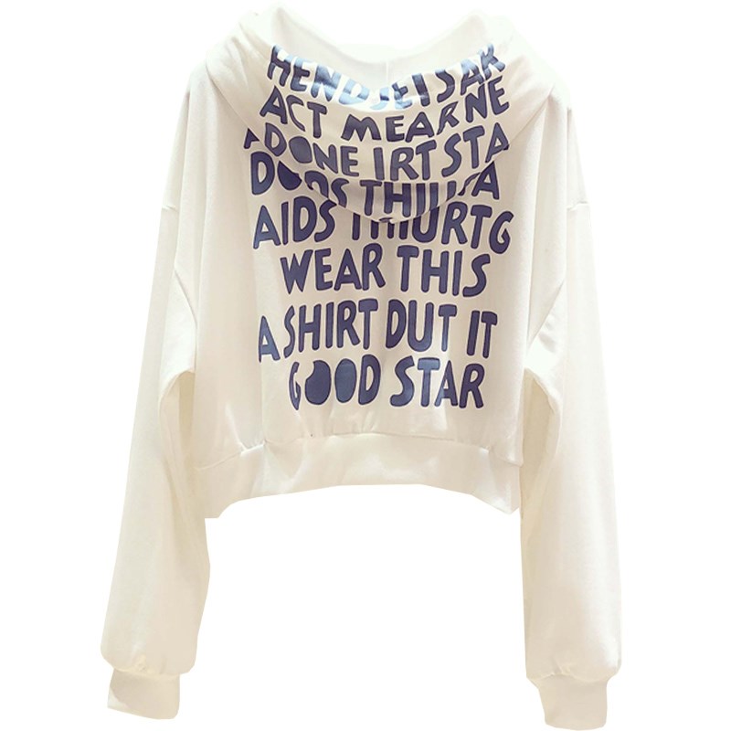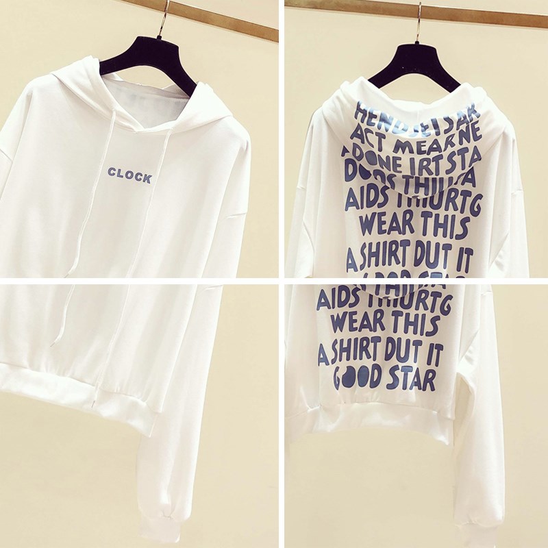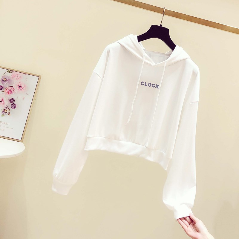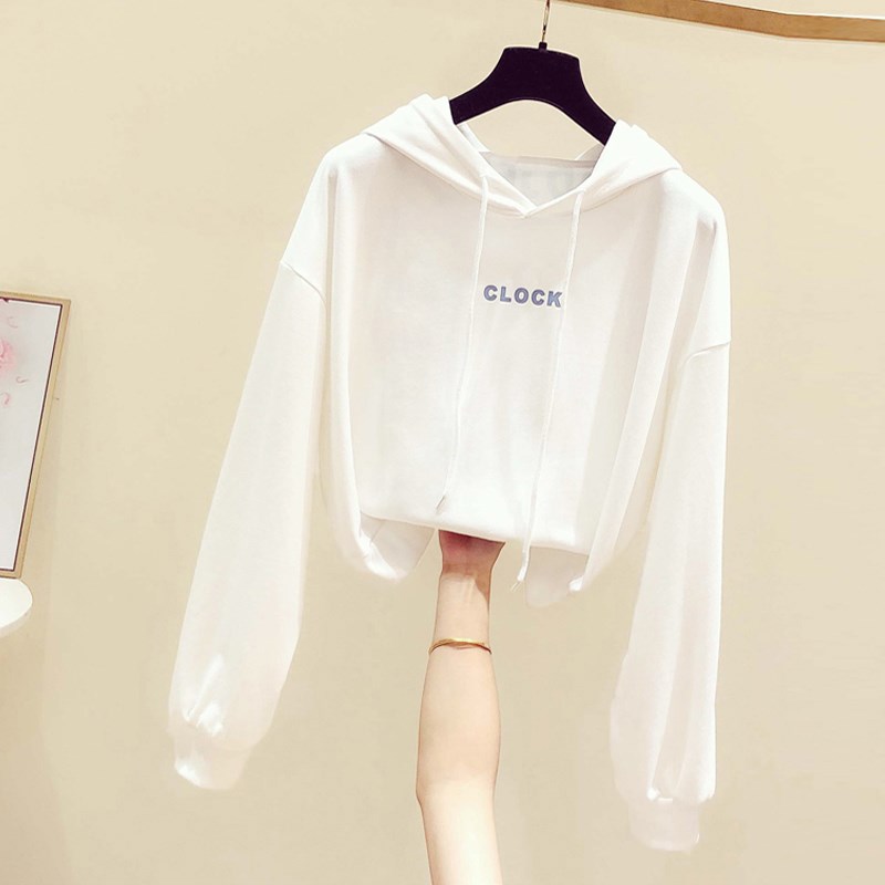 Hong Kong printed hooded short sweater women's 2022 spring new letter Han Fanyang style long-sleeved hoodie top trendy