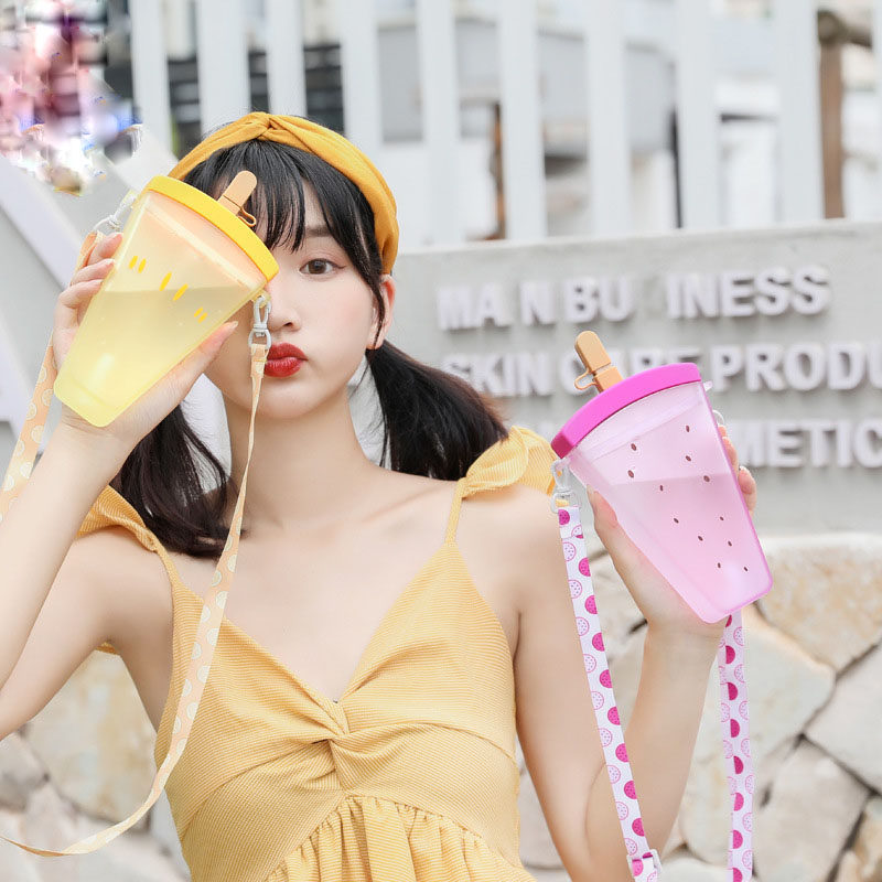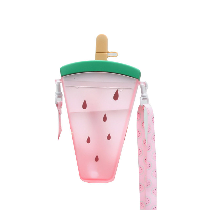 Children's water cup summer baby outgoing to carry kindergarten children's straw cup anti-fall watermelon ice cream net red kettle