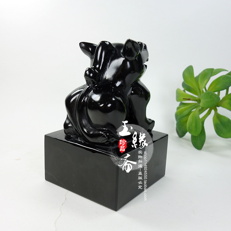 Black Yaoshi Leopard Leopard Seals Official Seal of Seal Fortune Printing Black Ink Jade Feng Shui Swing with Seal Engraving Name Desk Face Pendulum